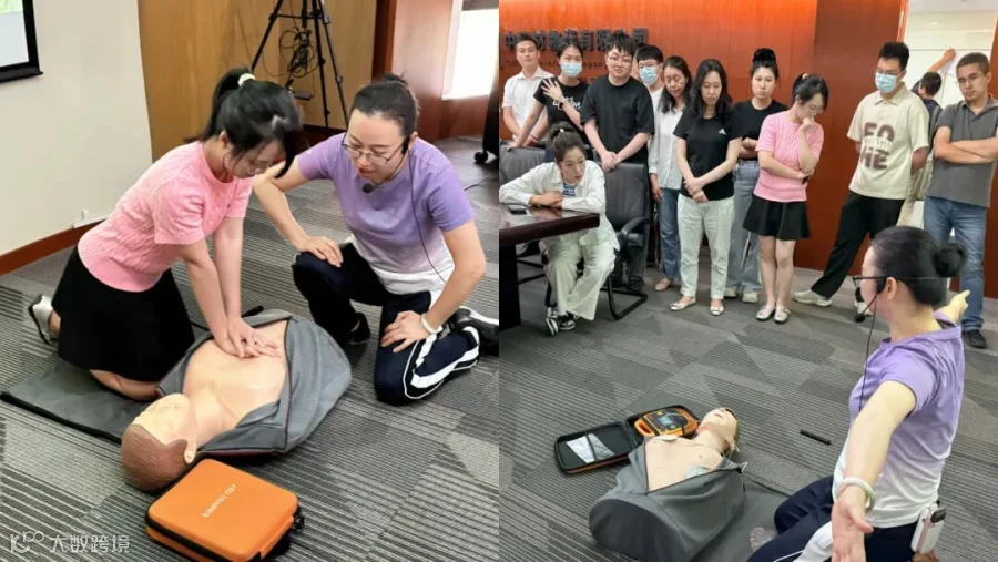 培训现场,老师通过“理论讲解+实操演练”相结合的方式,系统讲授了心肺复苏的判断标准、规范操作流程及AED的使用步骤。在模拟演练环节,参训员工积极参与模拟练习,在老师的指导下依次完成胸外按压、人工呼吸及AED设备操作,通过亲身体验巩固了急救技能,提升了在办公场所应对突发状况的实战能力。
