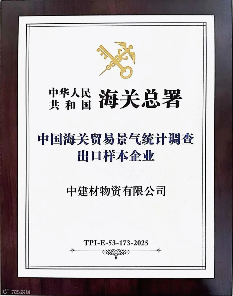 近日,中建材物资凭借其规范的企业经营、稳健的出口业绩、准确及时的数据报送以及良好的行业示范引领作用,荣获海关总署授予的“中国海关贸易景气统计调查出口样本企业”称号。