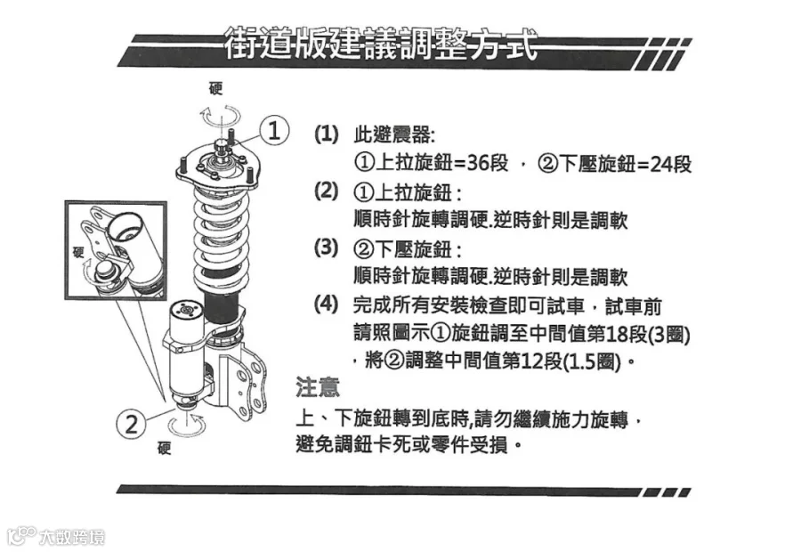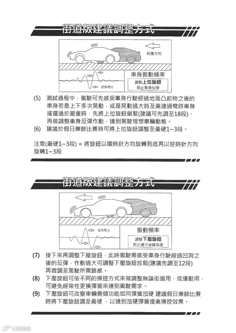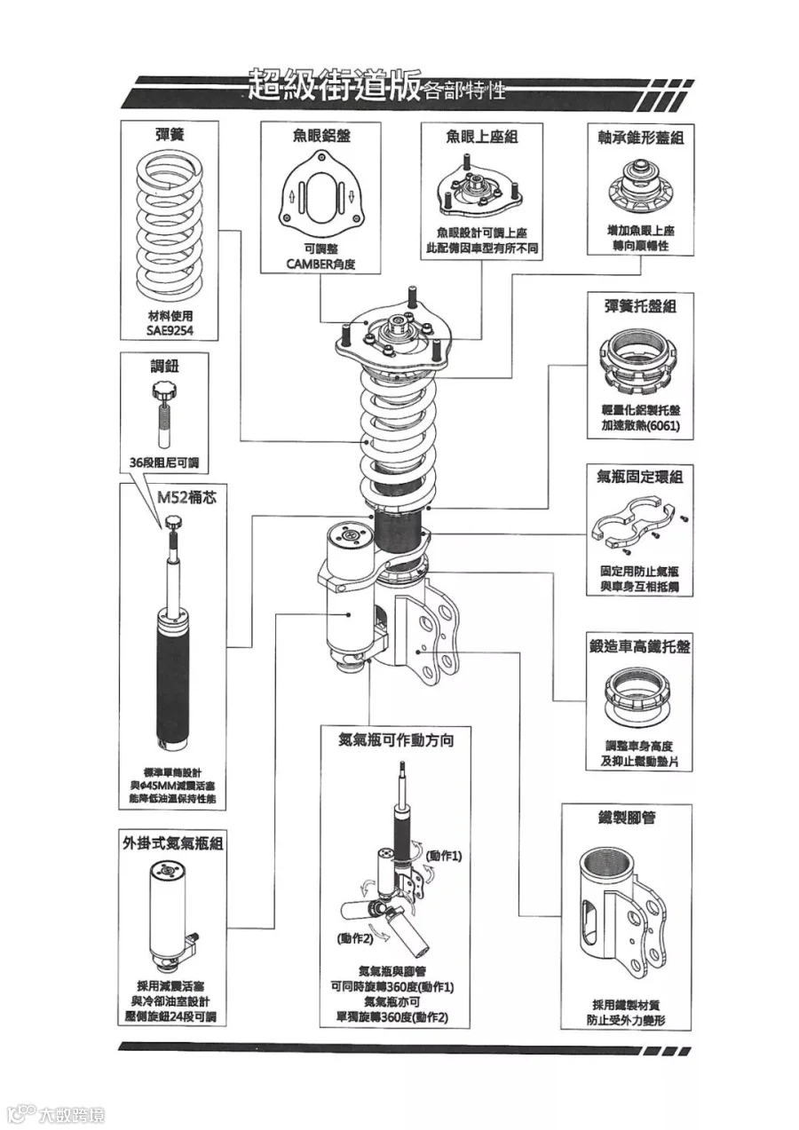 ●氮气瓶避震器专为顾客量身订作,因此前后桶芯皆为客制化, 具有较佳操控性。