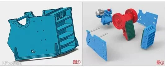 机架分为焊接式和组装式两种:中小型规格一般采用焊接式,大型规格一般采用组装式。焊接式采用大弧度过渡圆角、低应力区焊接方式,大大降低了应力集中,保证了机架在各方向强度的均等,具有耐冲击性、受力均匀、低故障率等特点。组装式采用先进的模块化、无焊接框架结构设计,疲劳强度大,可靠性高,同时整机组装式设计,运输、安装更加方便,特别适用于地下矿井、高海拔矿山等狭小、运输困难场所安装。见图①