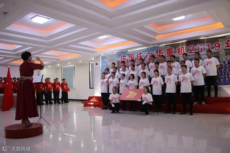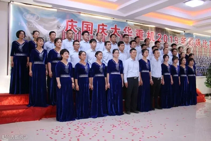 颂歌迎华诞,彰显新篇章,2019年9月30日我公司举行了“欢歌迎国庆,大华重工2019年歌咏比赛”,全体员工欢聚一堂,载歌载舞,再次用歌声唱响旋律,用歌声表达我们对祖国深深的爱意。