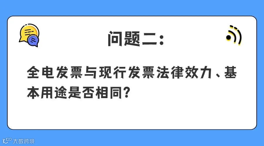 其中,带有“增值税专用发票”字样的全电发票,其法律效力、基本用途等与现行增值税专用发票相同;带有“普通发票”字样的全电发票,其法律效力、基本用途等与现行增值税普通发票相同。