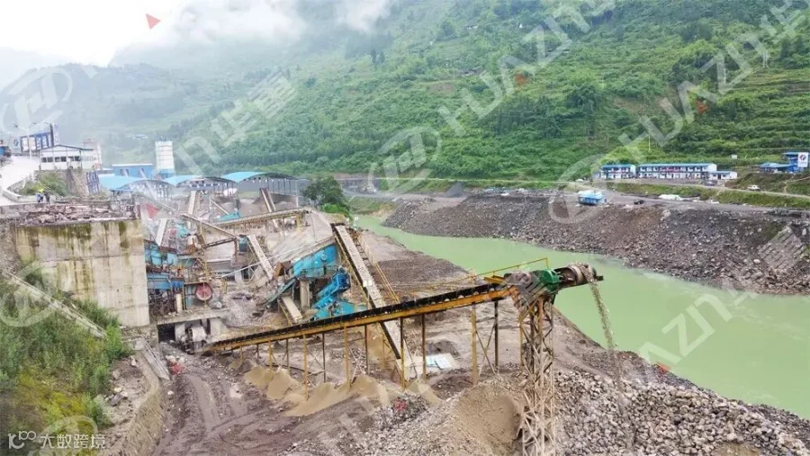该项目砂石骨料加工系统主体工艺流程由中国水利水电第十四工程局有限公司组织设计,由于该项目受地理条件因素的影响,场地空间较小,因此系统工艺设计需根据其特殊的地形条件,因地制宜,合理的进行规划布局,该项目现已顺利建设完成,处于高效运行中。该系统的中碎车间、细碎车间和筛分、洗砂车间的设备均为新购设备且由洛阳大华重工科技股份有限公司提供,给料和粗碎车间设备是项目方从其它工程调拨的设备。目前,正值电站施工高峰期,洛阳大华重工科技股份有限公司委派相关人员对该项目进行了回访,从项目方了解到,目前该系统充分发挥了设计和设备性能优势,各级成品骨料粒形好,级配合理,机制砂细度模数在2.6-3.0之间,符合设计要求,系统峰值产量可以达到450t/h,完全满足了电站工程施工的需要。