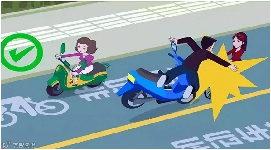 坚持“右行原则”:有非机动车道时严禁驶入机动车道;在没有非机动车道的道路上,应当靠车行道的右侧骑行,同时注意控制车速,避让行人。
