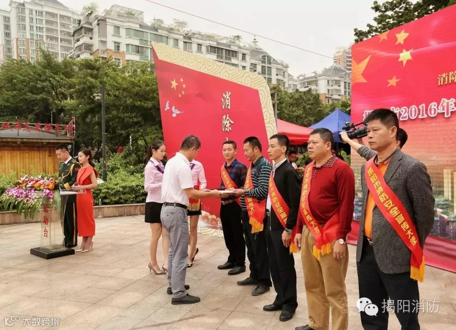 今天上午, 主题为“消除火灾隐患,共建平安社区”的2016年 “119消防安全宣传月”活动在揭阳青年文化广场启动。