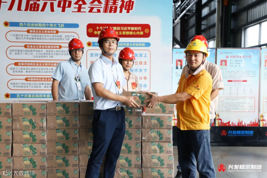 6月27日,广东兴发精密制造有限公司各部门管理人员在总经理助理廖文桦同志的带领下,为一线职工送去防暑降温的慰问品,拉开了兴发精密制造2022年“夏日送清凉”慰问活动的序幕。
