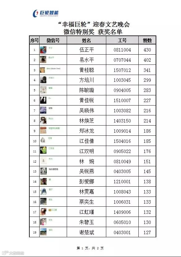 幸福巨轮 微信特别奖|名单出炉啦