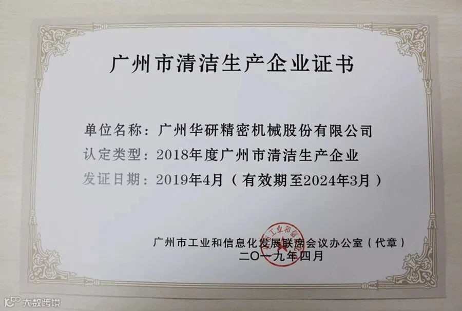 近日,广州华研精密机械股份有限公司(以下简称“华研”)开展清洁生产审核验收工作,并通过主管部门技术专家小组的现场审核验收,荣获“广州市清洁生产企业”称号。