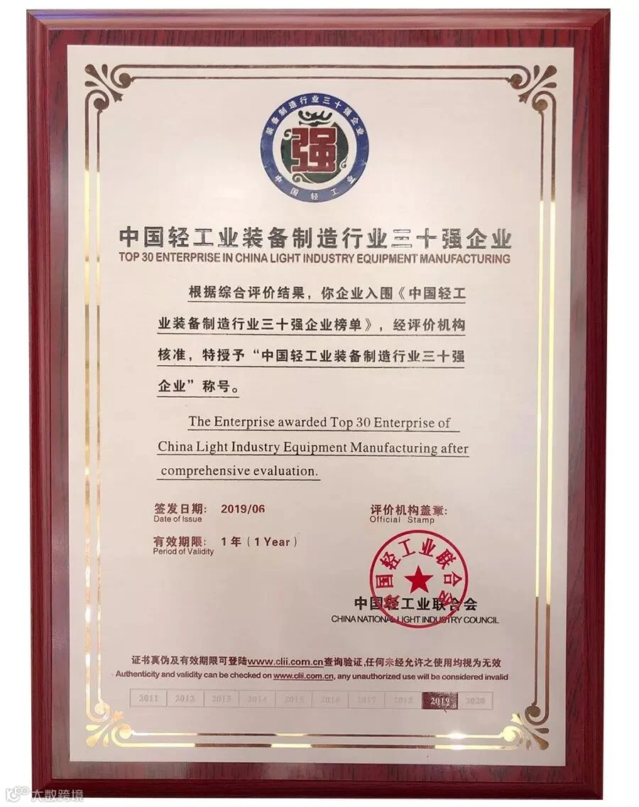 本届论坛,与会嘉宾和企业代表围绕“强化科技创新、服务美好生活”主题发表了演讲。大会还发布了中国轻工业百强企业评价公告,并为中国轻工业百强企业、中国轻工业科技百强企业、中国食品工业50强、中国轻工装备制造30强企业举行授牌仪式。经综合评价,广州华研精密机械股份有限公司荣获“中国轻工业装备制造行业三十强企业”称号。