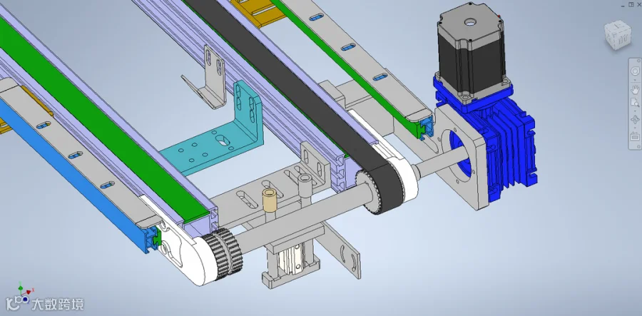 模块主要是由同步带、同步带轮、电机、气缸、铝型材等二十多种零部件组成。