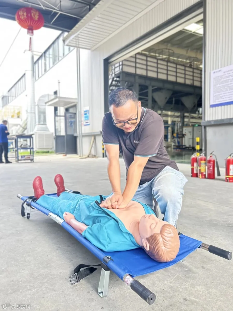 6月26日下午,公司组织应急救援演练,内容包括有高温中暑的急救、紧急心肺复苏演练和灭火器的使用。