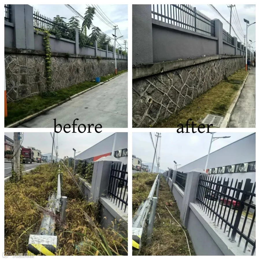 经过一个半小时的努力,原本杂草丛生的厂区周边变得焕然一新。