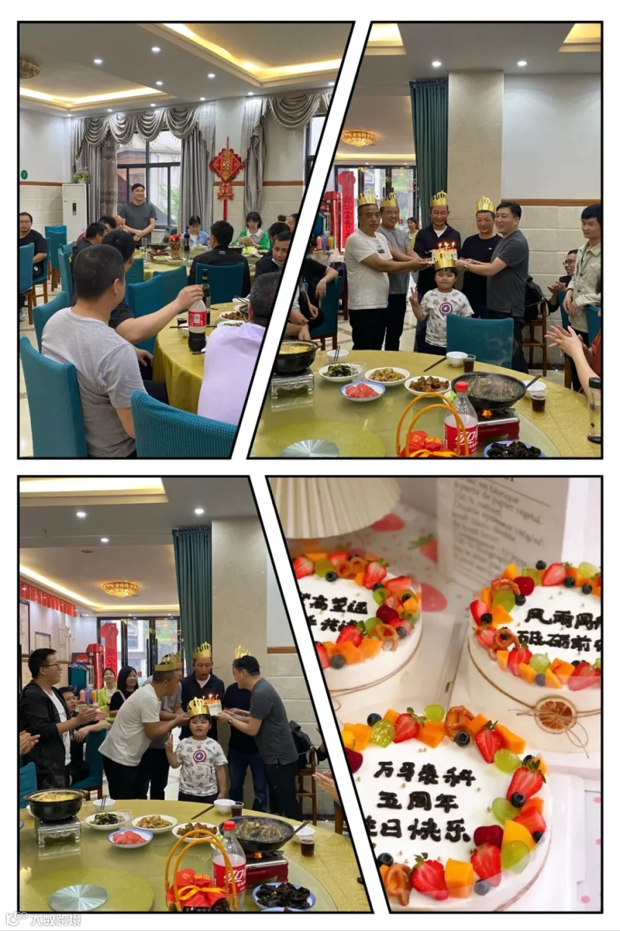 登山结束后,我们在山脚的望景民宿稍事休息,晚餐前总经理祝词并给二季度生日的同事与泰科的5周岁一同过了生日。