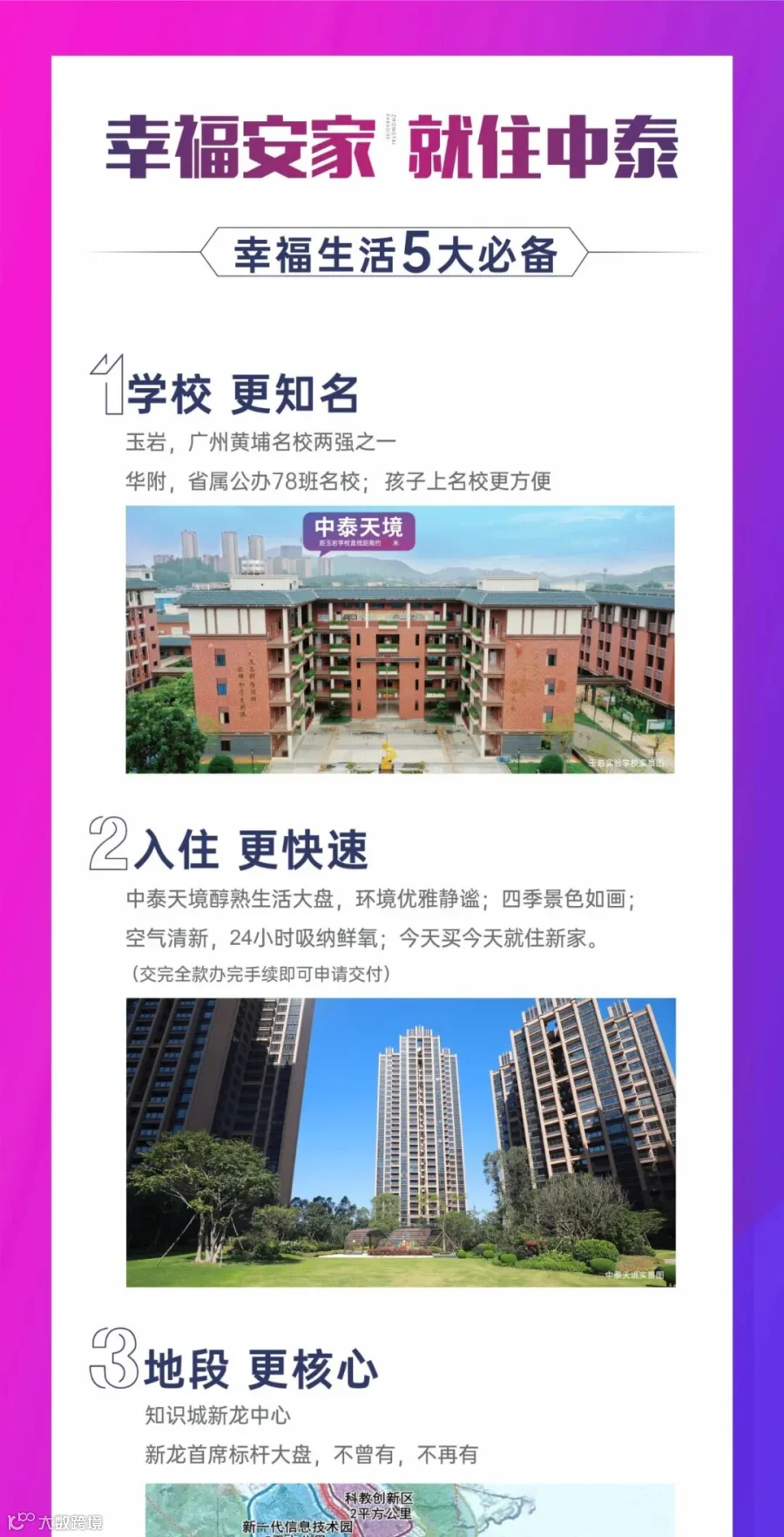 文内所涉面积均为建筑面积,图片仅为示意图,部分素材来源于网络。本宣传资料为要约邀请,不构成要约内容,具体信息以合同约定及政府最终审批为准。本资料发布时间为2021年1月,本公司保留对宣传内容修改的权利。预售证号:穗房预(网)字第20160765号;备案名:中泰天境花园自编三期。推广名:中泰天境。