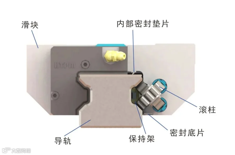 LGR系列滚柱直线导轨副,导轨采用优质合金刚制成,定位侧面和滚道同时磨削,保证了滚道精确的几何形状,保持架能防止滚子散落。返向器采用高强度的工程材料制成并引导滚子反向连续的循坏运动。密封端盖和密封底片是防尘的必要部件。导轨副的润滑通过注油杯注入润滑剂来进行