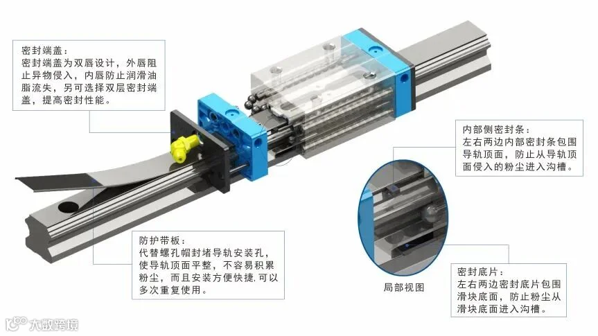 LGS型导轨副可选用多种密封件,提高密封性能,特别适合在多粉尘或木屑的使用环境。