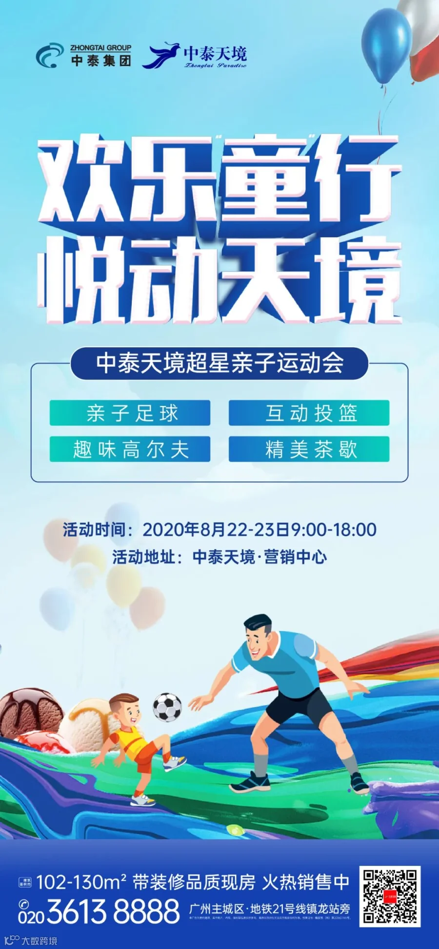 文内所涉面积均为建筑面积,图片仅为示意图,部分素材来源于网络。本宣传资料为要约邀请,不构成要约内容,具体信息以合同约定及政府最终审批为准。本资料发布时间为2020年8月,本公司保留对宣传内容修改的权利。预售证号:穗房预(网)字第20160765号;备案名:中泰天境花园自编三期。推广名:中泰天境。