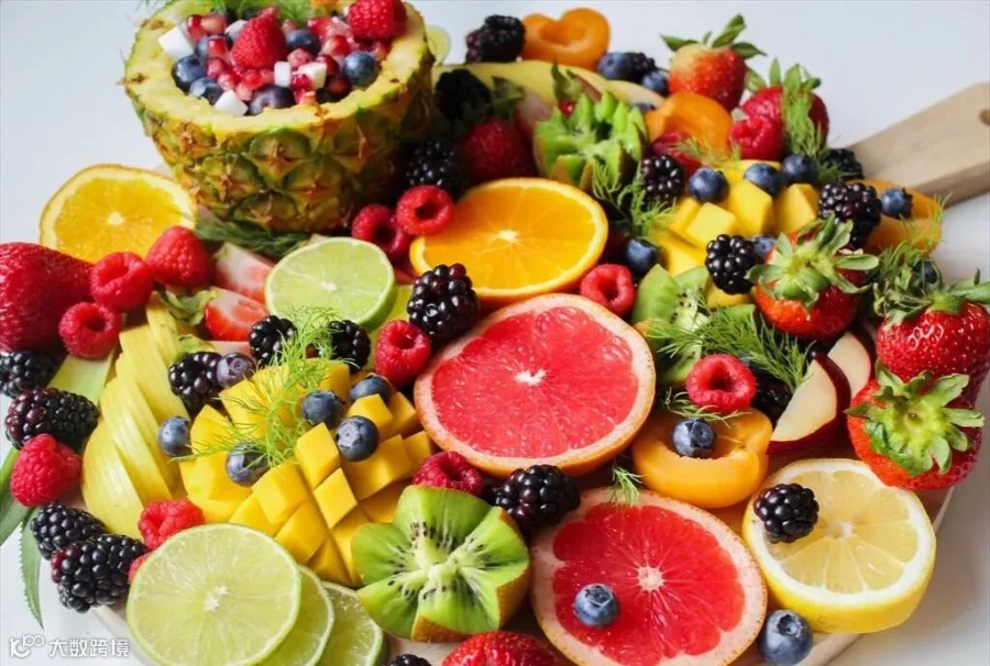 沙拉、水果拼盘、橙汁等