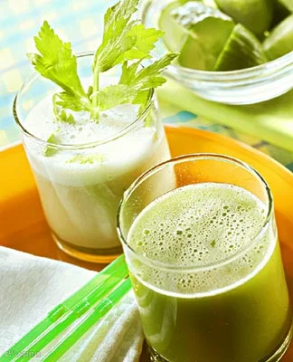 吃得太油腻,喝杯芹菜汁。如果一餐中吃的油腻食物较多,喝杯糖分低、纤维素含量高的芹菜汁大有裨益。芹菜中的纤维素可以带走部分脂肪。