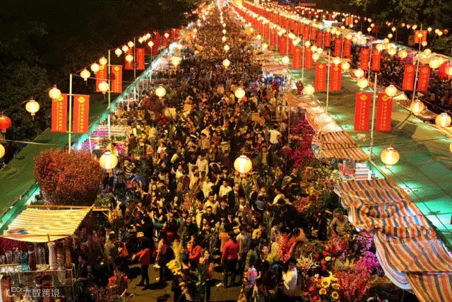 广州人的年三十自然少不了逛花市。迎春花市内热闹非凡、人潮涌动,一直要闹到初一的凌晨才会罢休。逛过花市才算过年已成为萦绕在广州人心里的情结。