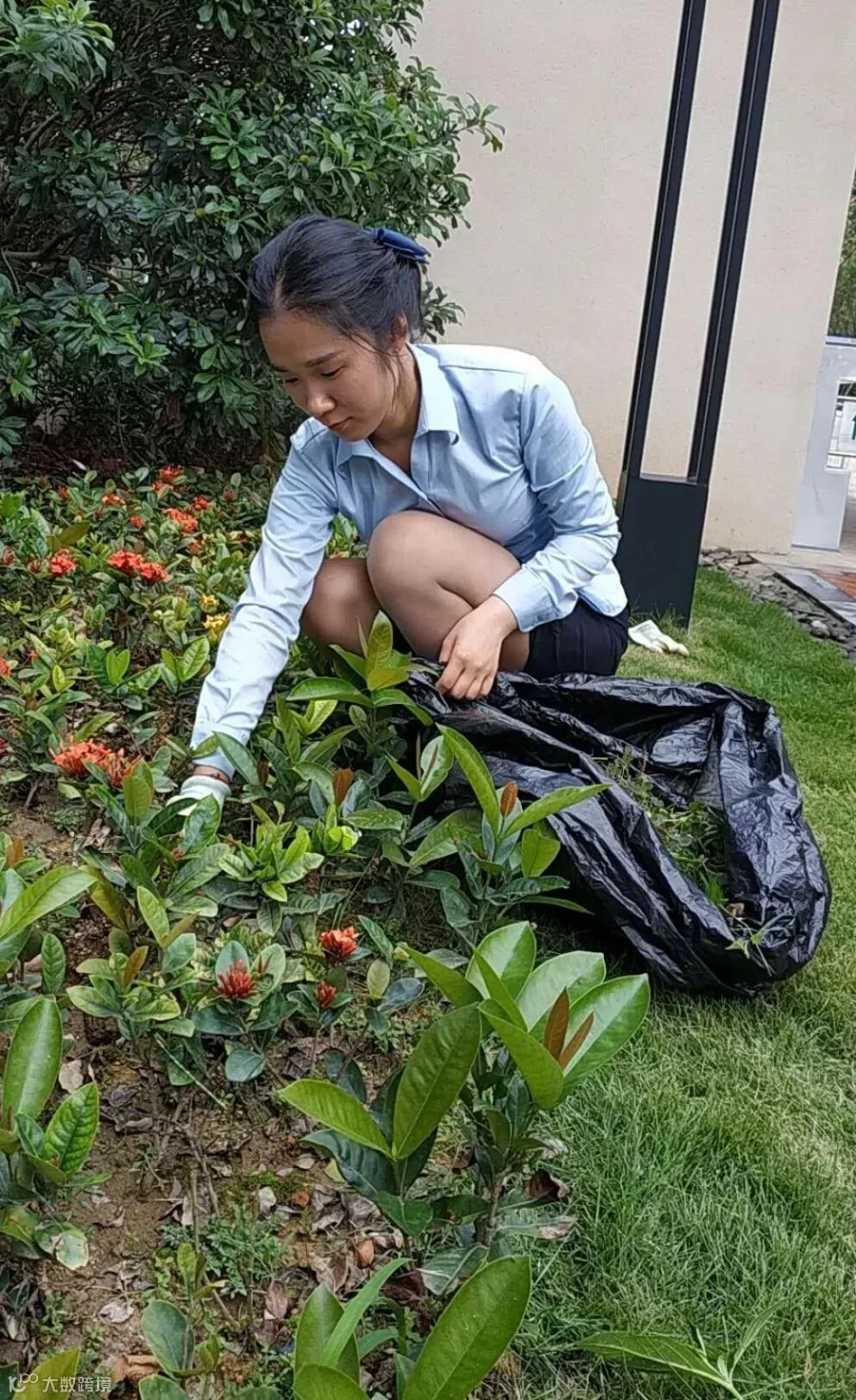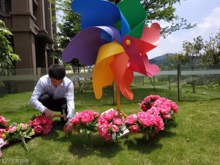 ▲ 客服部的同事冒着酷暑进行花卉补植