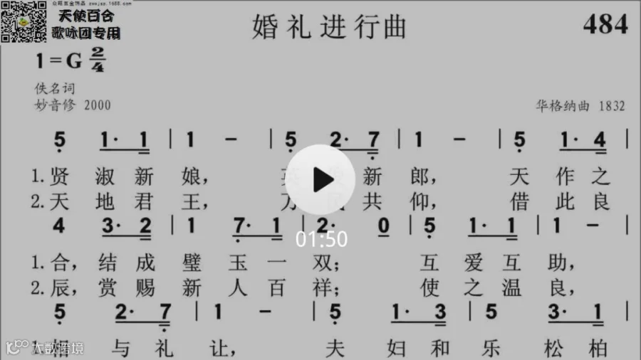 再来一首婚礼弥。撒【婚礼进行曲】(男女合并) [ 动态乐谱 ]