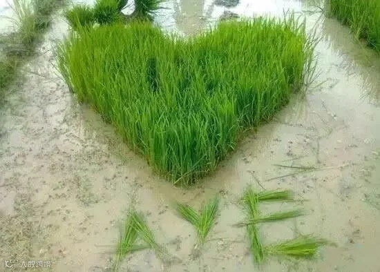 农民用秧苗表达爱意……