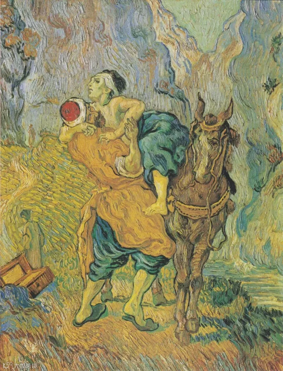 当梵高画这幅画的时候,他住在圣雷米疗养病院里。这是临摹尤金·德拉克洛瓦Eugène Delacroix的《好撒玛利亚人》。梵高也临摹了他的《圣母怜子图》。
