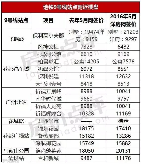 路通则财通!借地铁进度公布的好时机,给大家带来知识城线、7号线以及9号线的最全楼盘价格及涨幅!