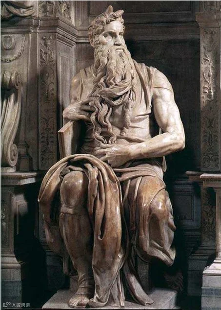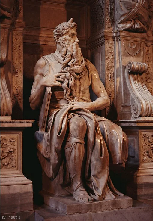 梅瑟大理石雕像,高235厘米,创作于1513-1516年间,罗马梵蒂冈圣伯多禄大教堂。