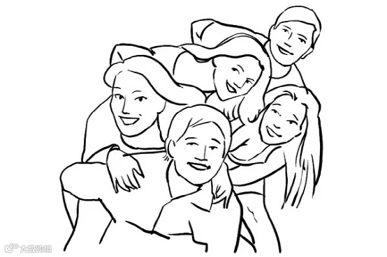 6. 这个比起普通合影有趣一点。请所有人靠近,尤其是头部要靠拢多一些,并拥向镜头。