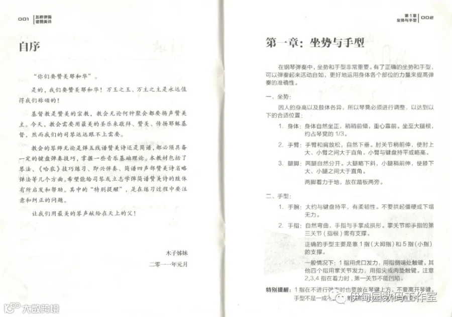 教会的琴师无论是弹五线谱还是简谱,都必须具备 一定的键盘弹奏技巧,掌握一些音乐基础理论。本教材包括了 琴法、《哈农》技巧练习、即兴伴奏、简谱四声部赞美诗省略弹法等几个方面。希望能给司琴或立志学弹简谱赞美诗的肢体有所启发和帮助。其中的“特别提醒”,是在练习过程中要注意和纠正的问题.