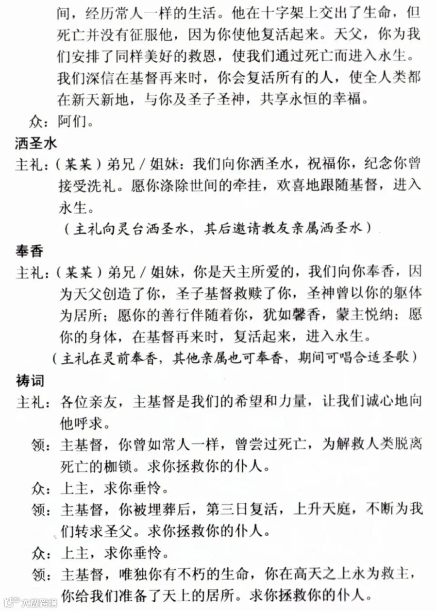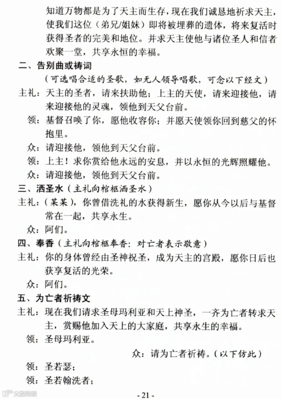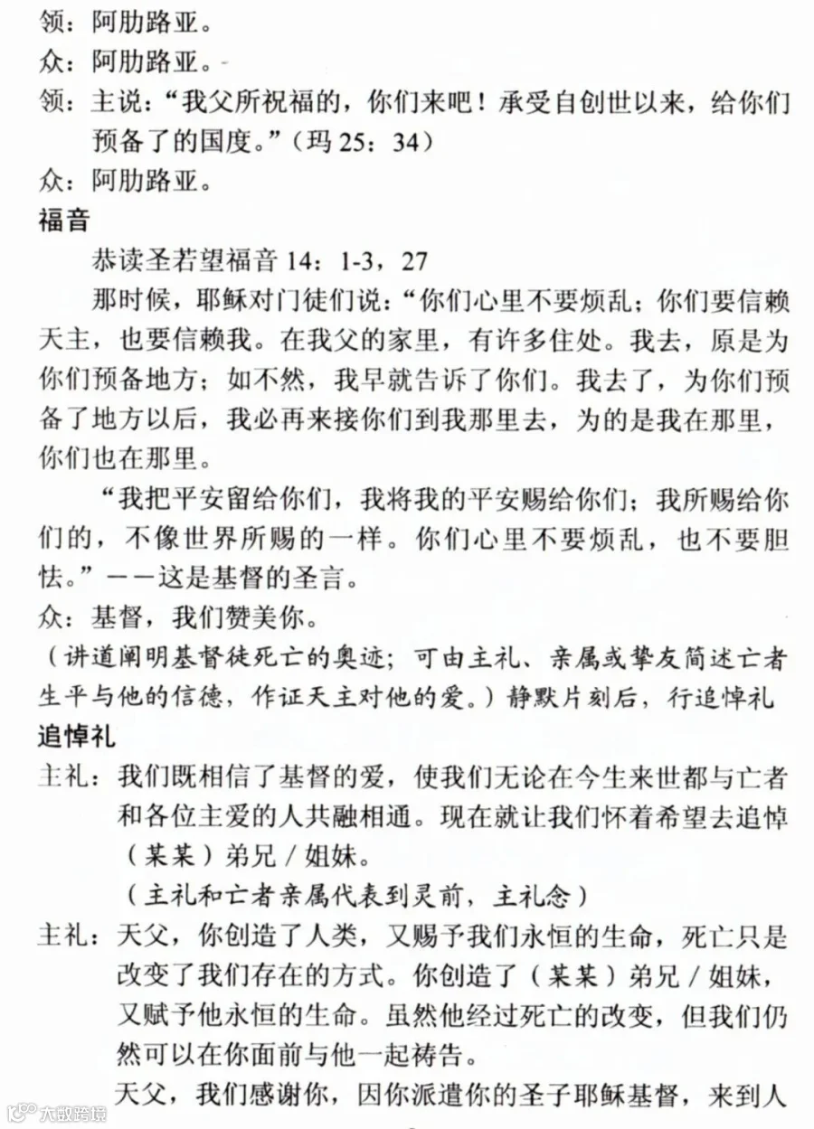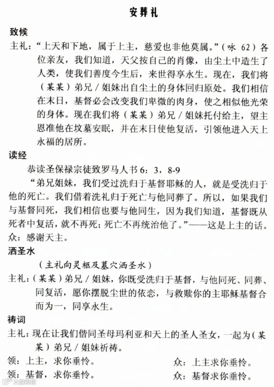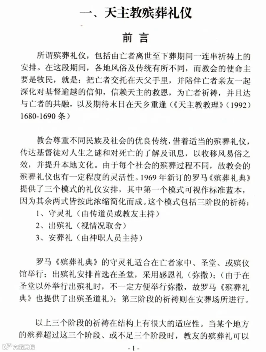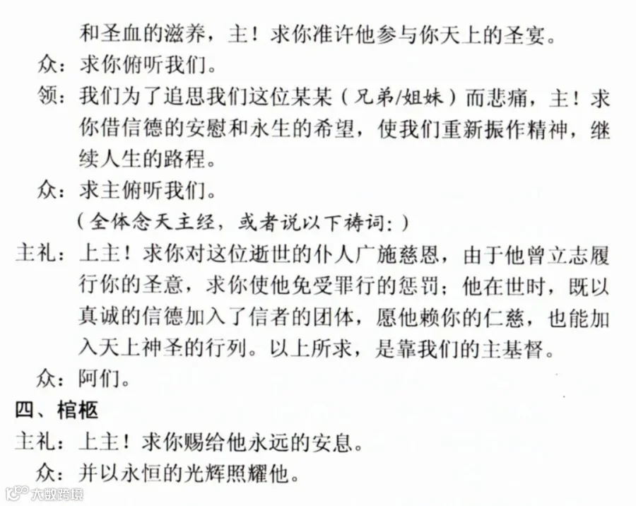 一、天主教殡葬礼仪