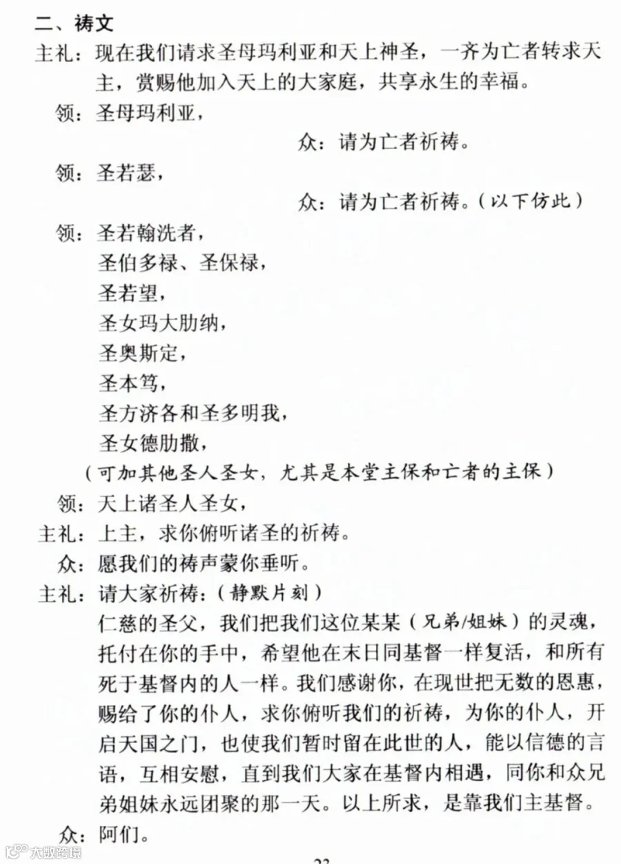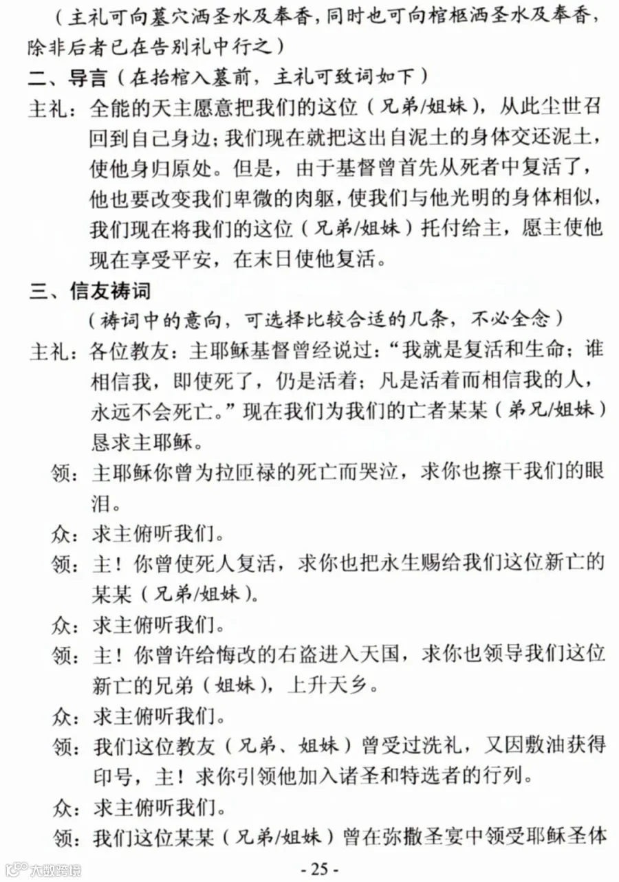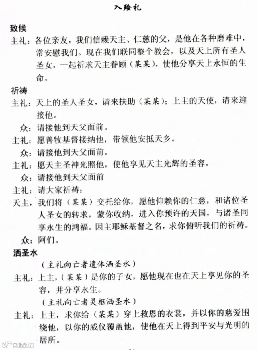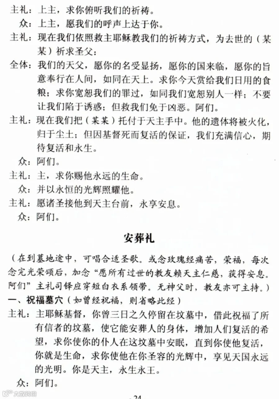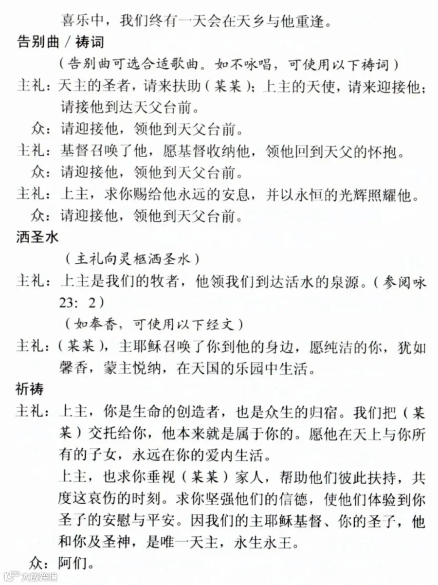 一、天主教殡葬礼仪