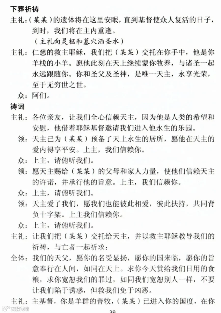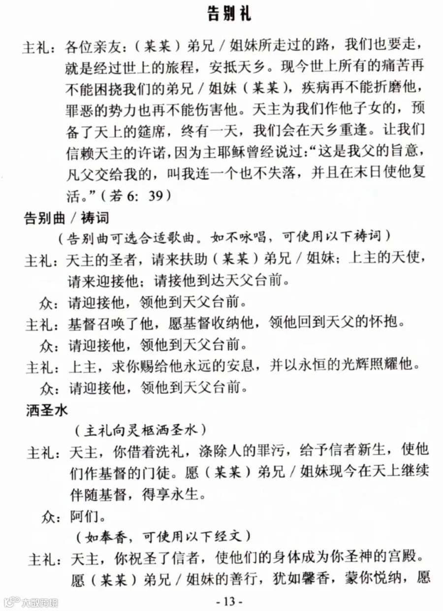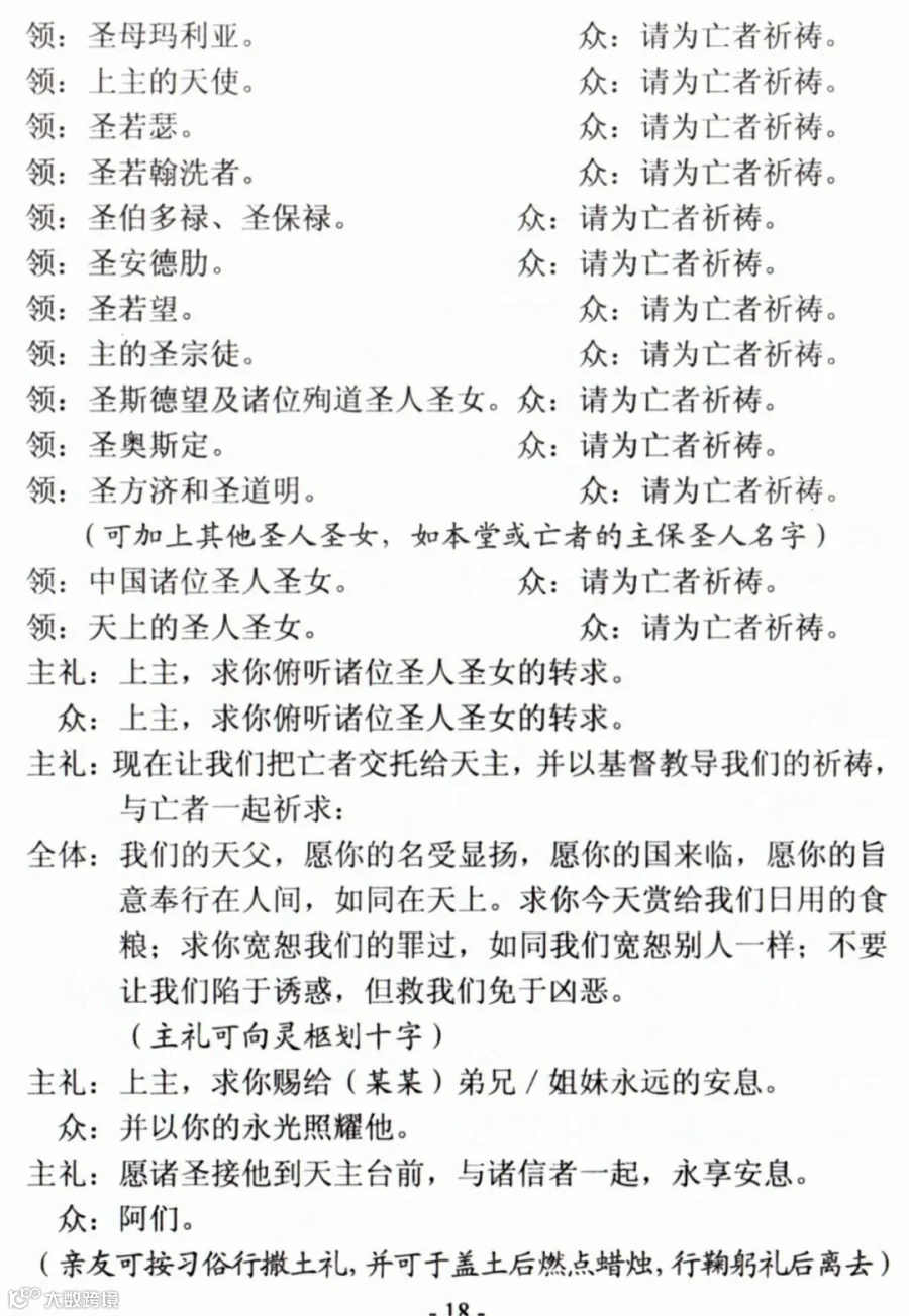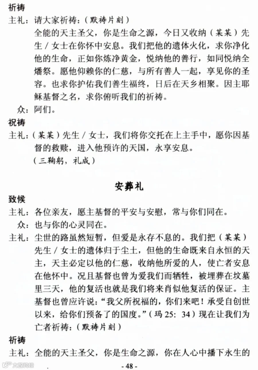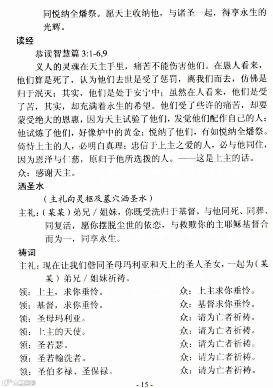 一、天主教殡葬礼仪