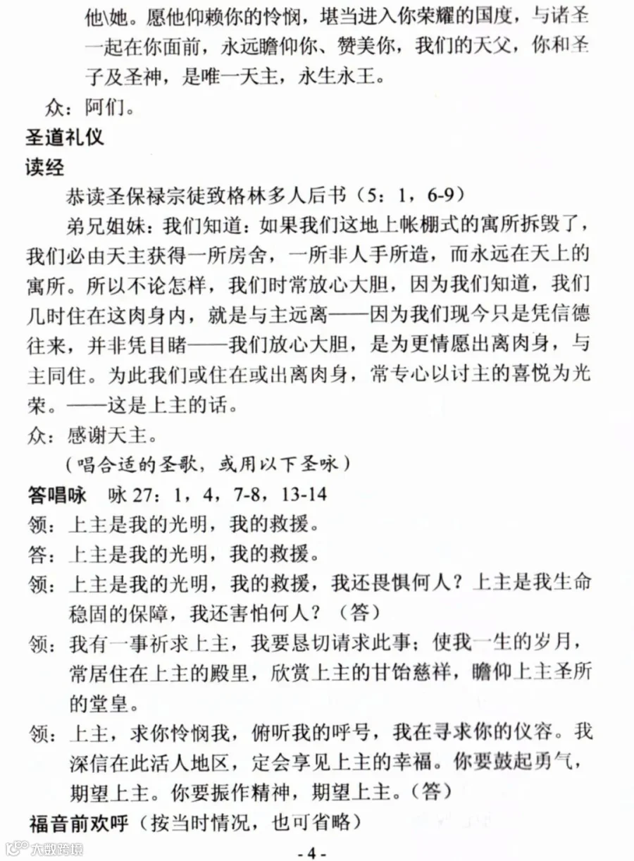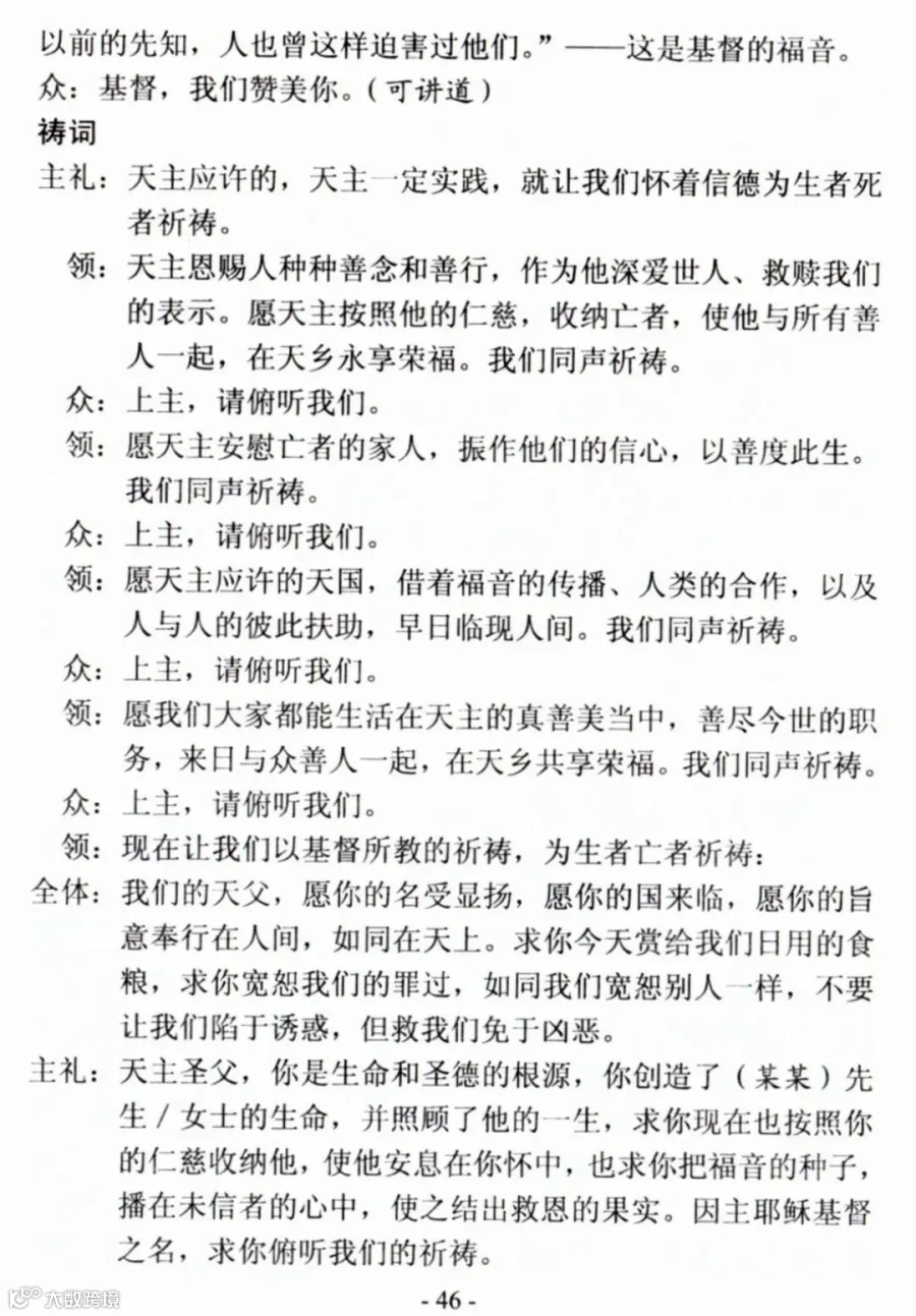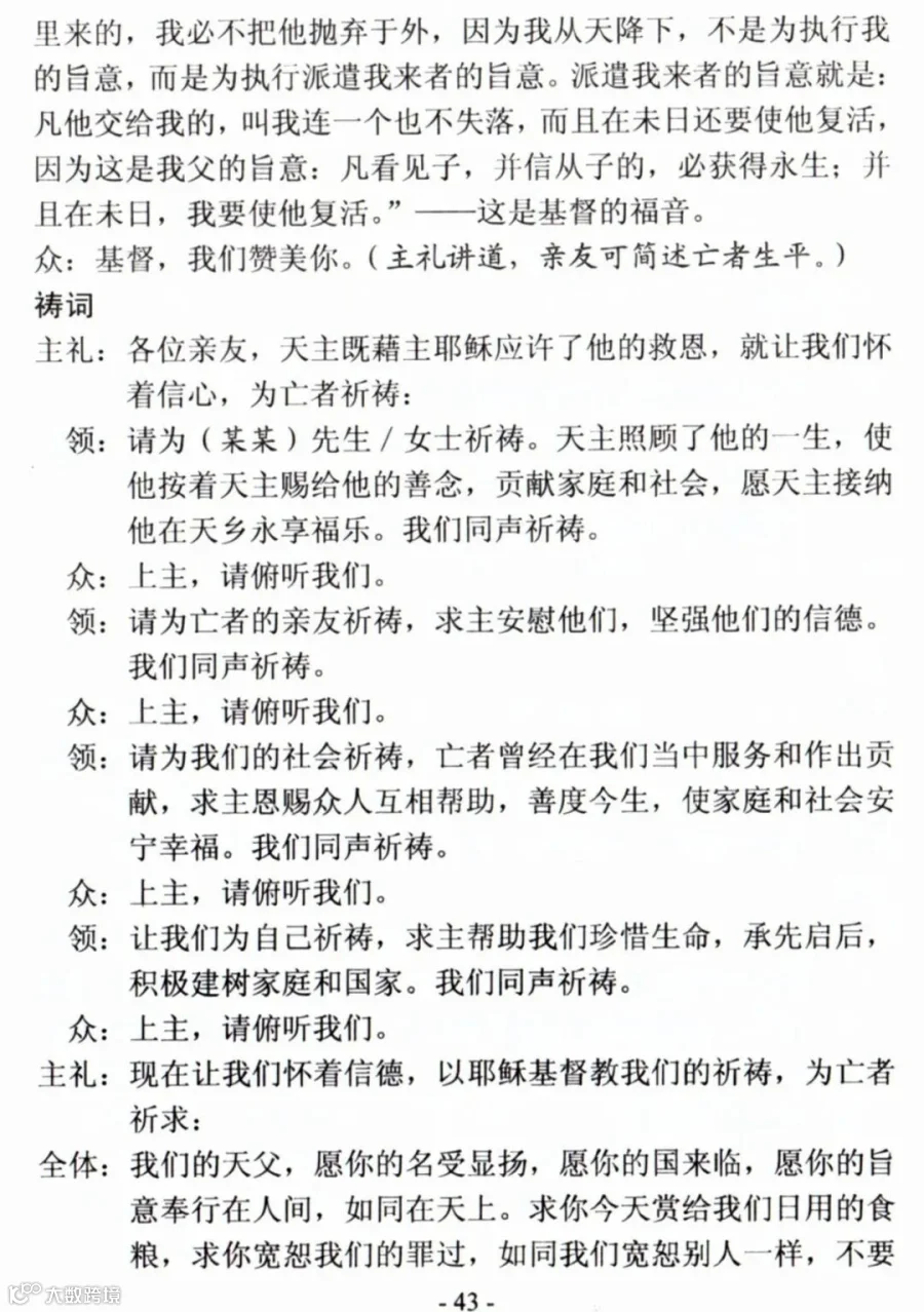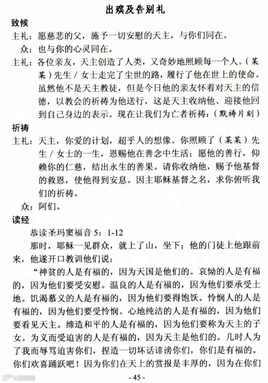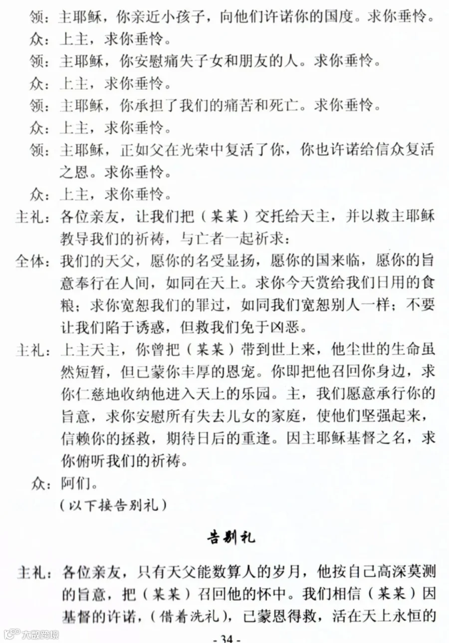 一、天主教殡葬礼仪