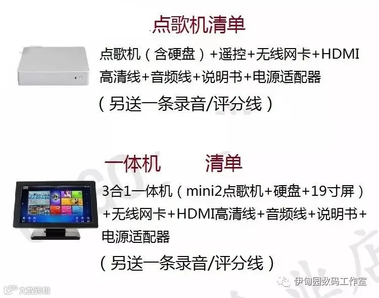 3.点歌机【包含1所有内容+点歌机主机+2T硬盘+19寸触摸屏+无线网卡】=3888元