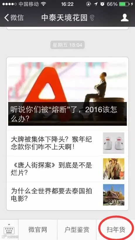 进入中泰天境花园公众号