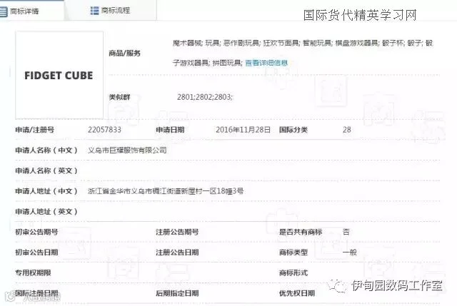 看到这里,我想大家都感受到从去年指尖陀螺fidget spinner开始火爆,下半年后fidget spinner的商标在各国纷纷申请注册,随之也渐渐火热的fidget pen和fidget cube也在今年年初开始陆续被申请商标,在商火纷飞的年代各位大神对知识产权的重视度越来越高,敏锐度也越来越惊人了。