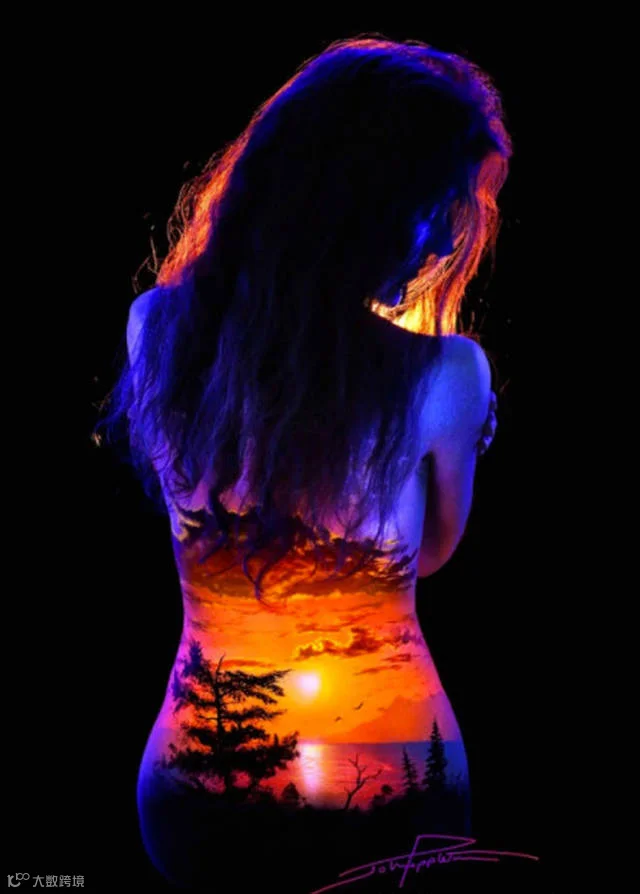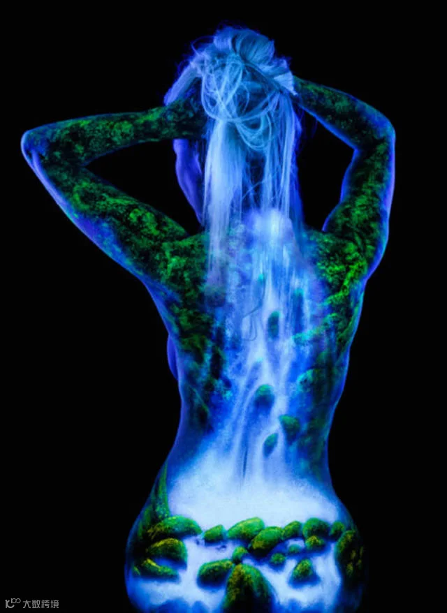 艺术家将轮廓婀娜的女人体作为画布,配以荧光颜料和特别灯光,呈现这些惊艳的自然之美。