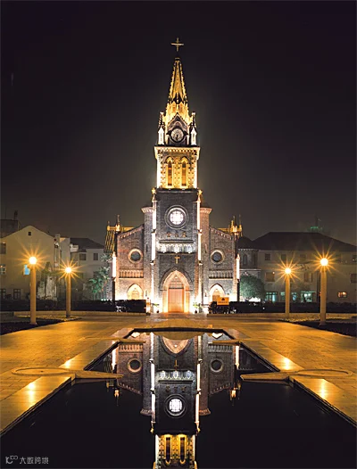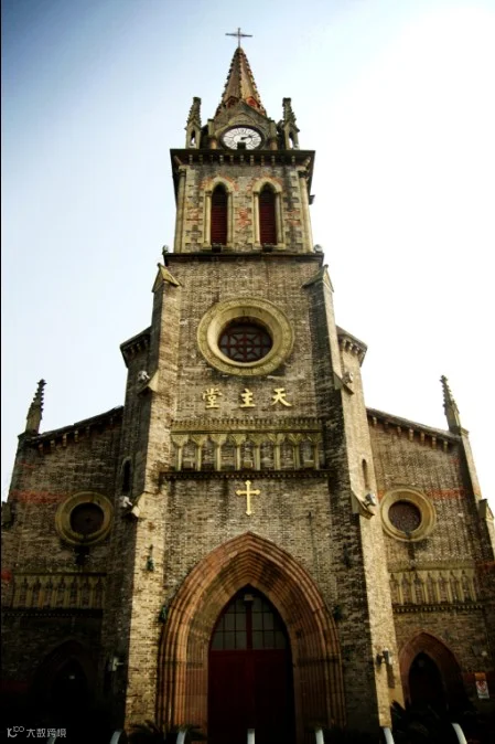 宁波江北天主教堂,位于浙江省宁波市江北岸新江桥北堍“三江口”北岸,整个建筑群由主教公置、本堂区、及若干偏屋组成。建筑完整划一、气势宏伟壮观,尤其是高耸挺秀的教堂以其独有的哥德建筑风貌,是国家级的优秀近代建筑物,被列为浙江省文物重点保护单位,是第六批全国重点文物保护单位。