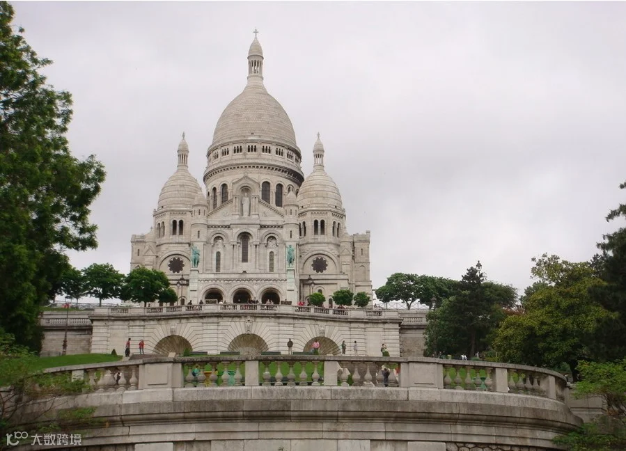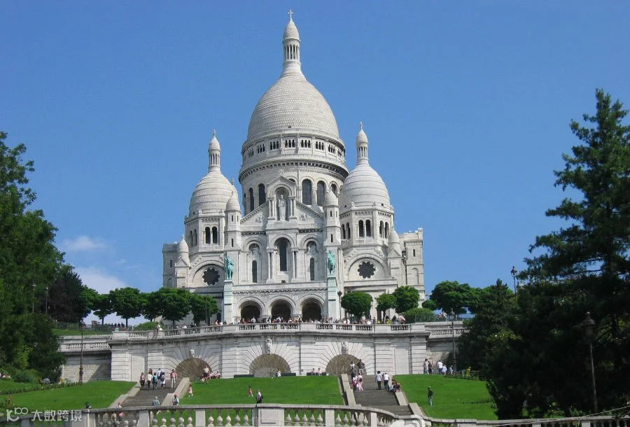 它洁白的大圆顶具有罗马式与拜占庭式相结合的别致风格。大圆顶四周为四座小圆顶,很具有中东情调。教堂后部有一座高84米的方型钟楼,里面有一只世界最大的萨瓦钟,重19吨,是世界上最大的钟之一。教堂正面是三个拱形大门,大圆顶两侧有两尊骑马塑像:法国国王圣·路易和民族女英雄圣女贞德。