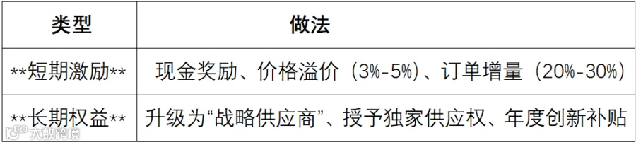 收益分成:对创新带来的成本节约或收入增长,按15%-20%比例与供应商分成。