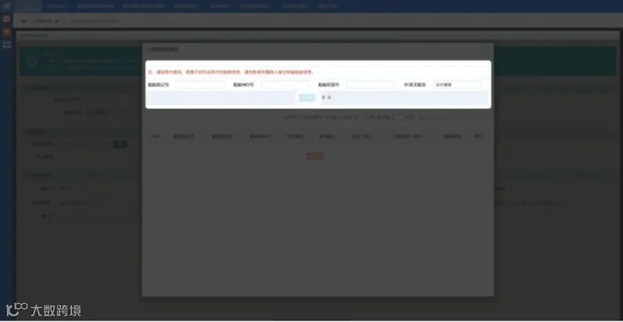 [接下来页面跳转到“船舶信息查询“,任选查询条件,输入信息,点击查询。]