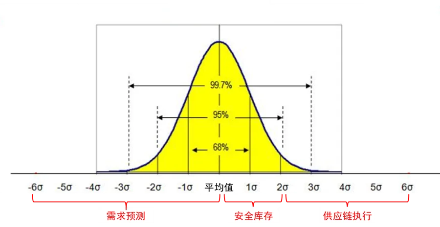 在我的经历中,做得比较好的企业通过预测和安全库存,一般能够有计划地达到95%左右的服务水平,也就是2个西格玛的服务水平。顶级的企业能够达到3个西格玛上下:4个西格玛是极限,叫四西格玛墙,很难突破。一般的企业呢,大致只能在1个西格玛的水平徘徊(百分之八十几的服务水平)。