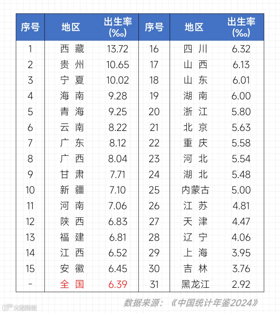 全国的出生率少了,但西藏、贵州、宁夏的老百姓还很喜欢生娃;