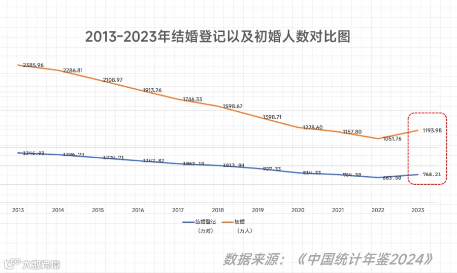 根据统计年鉴,2023年,全国初婚人数比2022年还增加了142万多人,是自2014年以来第一次回升。
