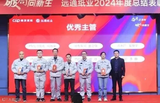 2024年远通纸业全体员工团结一心、奋进拼搏、爱岗敬业,攻坚克难创佳绩。大会对年度优秀个人、管理者、团队给予表彰。