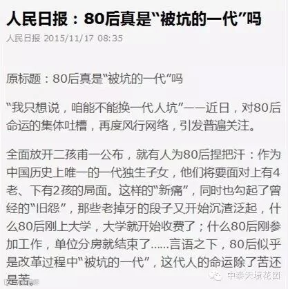 人民日报:2015年11月17日刊登《80后真是“被坑的一代”吗》一文,引人深思,网友纷纷深表同感!