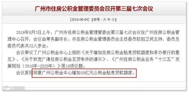 最新消息,广州公积金管理委员会第三届七次会议昨日召开,会上原则同意,广州公积金中心增加50亿元公积金贴息额度!